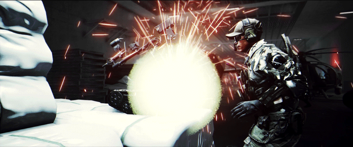 One soldier and his trusty robot take on the battlefield highhandedly.